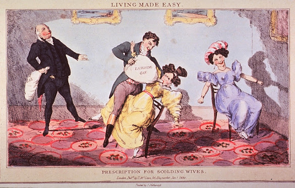 | Efectos del óxido nitroso o gas hilarante (Londres, lámina de 1830) |